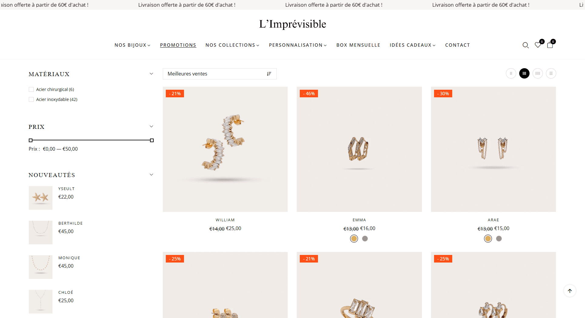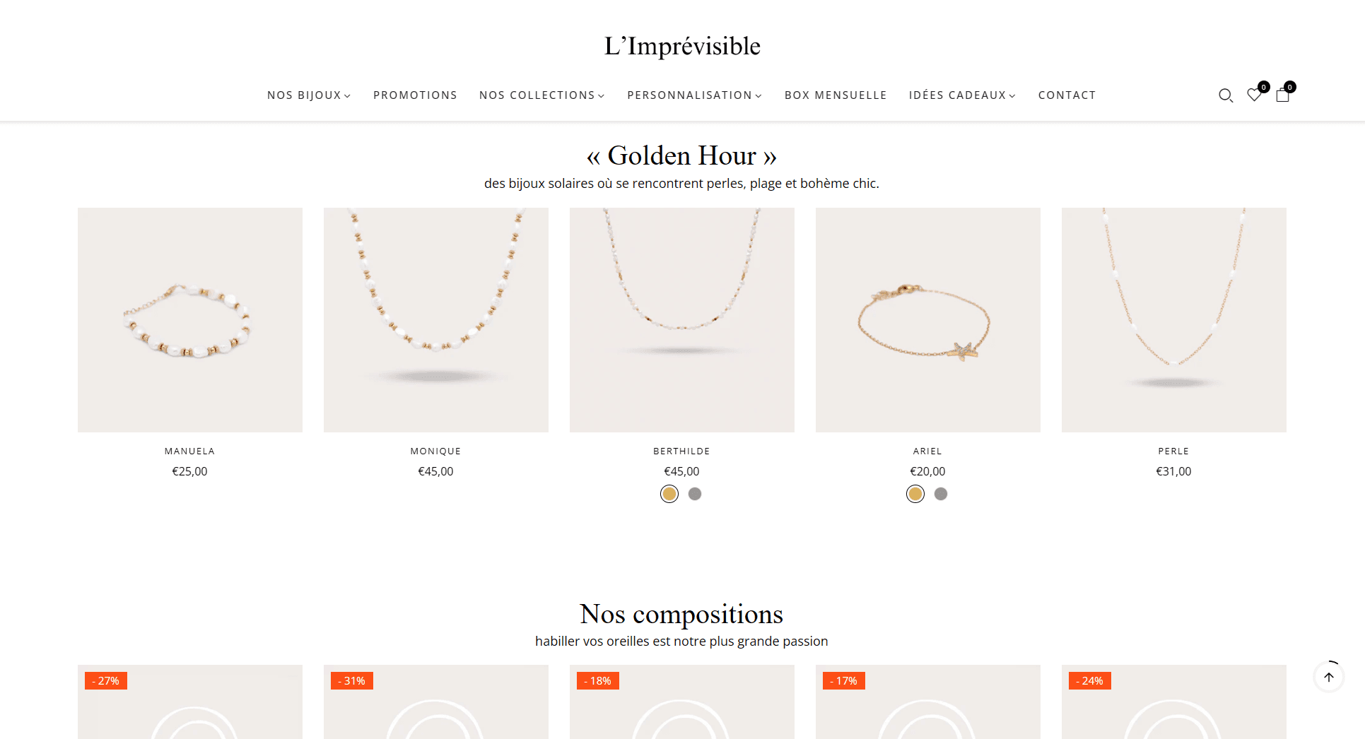 L'Imprévisible est une marque française de bijoux créée en 2020, proposant des créations en acier inoxydable de qualité. Nous avons développé une boutique en ligne élégante et moderne qui reflète parfaitement l'état d'esprit de la marque. Le site présente leurs collections avec un design raffiné, intègre un système de personnalisation innovant et offre une expérience d'achat fluide et intuitive. L'objectif était de créer une plateforme e-commerce qui incarne la philosophie de la marque : avancer sans se retourner et agir à l'instant présent, tout en proposant des bijoux de qualité à des prix abordables.