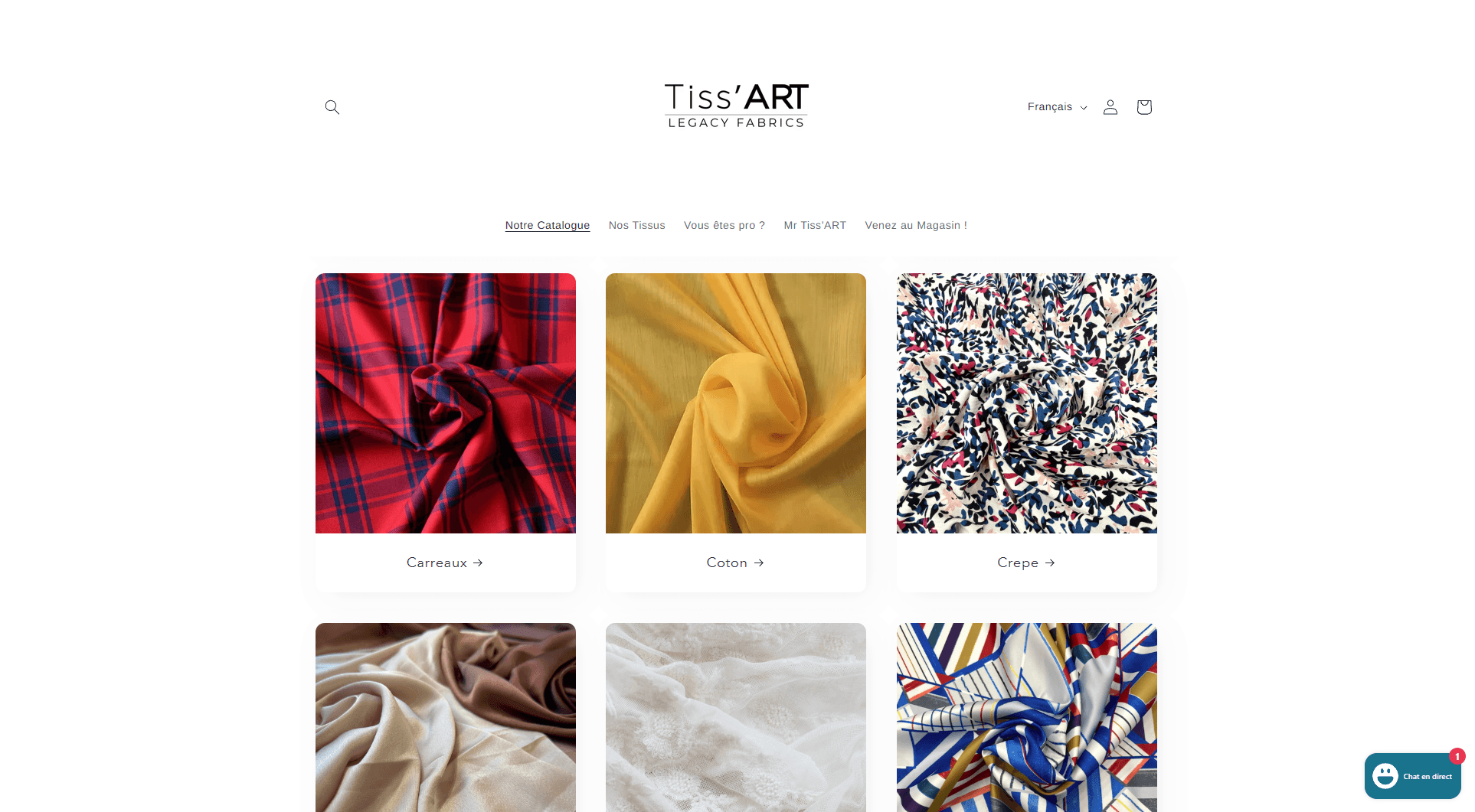 Tiss'ART est un spécialiste du textile de haute couture depuis 2011. Nous avons créé une plateforme e-commerce moderne et élégante qui met en valeur leur expertise et leur passion pour les belles matières. Le site présente leurs collections de soie, viscose et coton avec une navigation intuitive et une expérience utilisateur optimisée pour attirer une clientèle passionnée par la couture et la création. L'objectif était de créer une vitrine digitale qui reflète l'art du tissu et facilite la découverte de leurs produits d'exception.